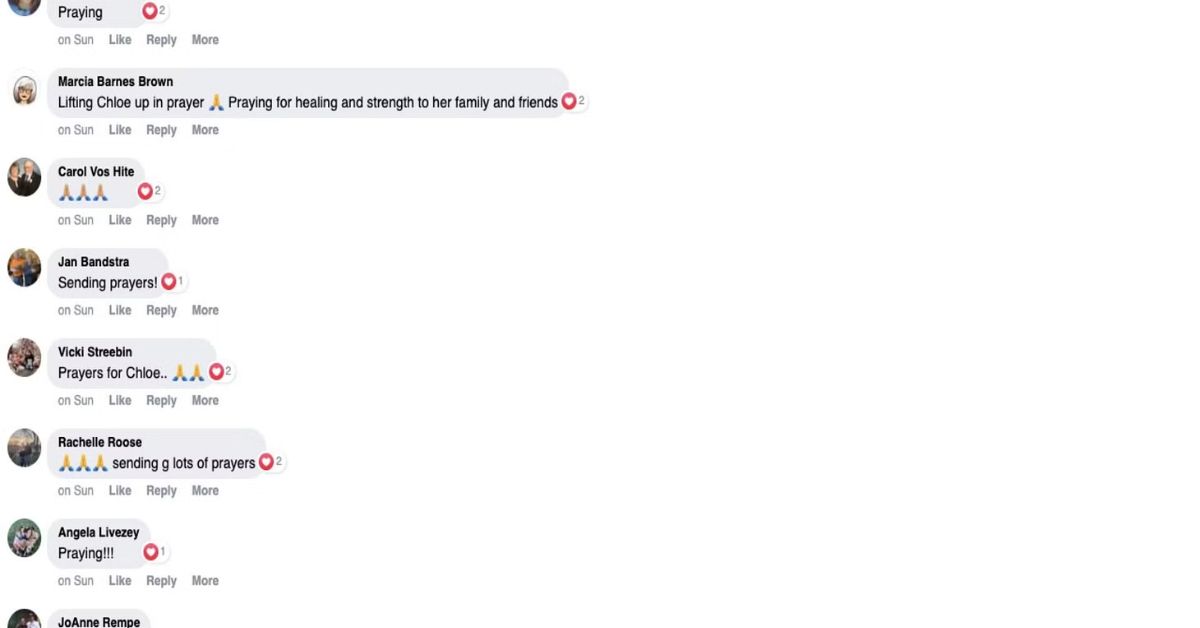 “Lifting Chloe up in prayer. Praying for healing and strength to her family and friends”